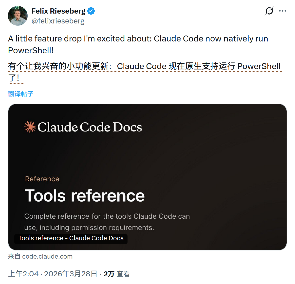 - Claude Code 上线 Windows PowerShell 原生运行支持 ↗