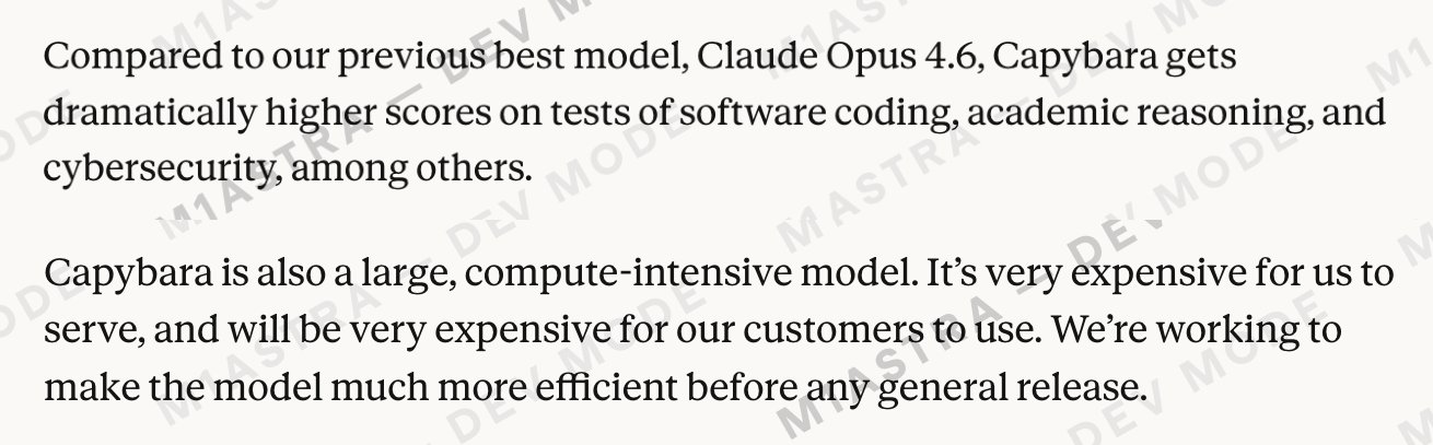 Anthropic 因外部工具配置错误泄露了代号为“Capybara”的未发布新模型信息,该模型正式名称将为 Claude Mythos,定位在 Claude Opus 之上的全新第四档,在编码、推理及网络安全能力上实现了跨越式提升。