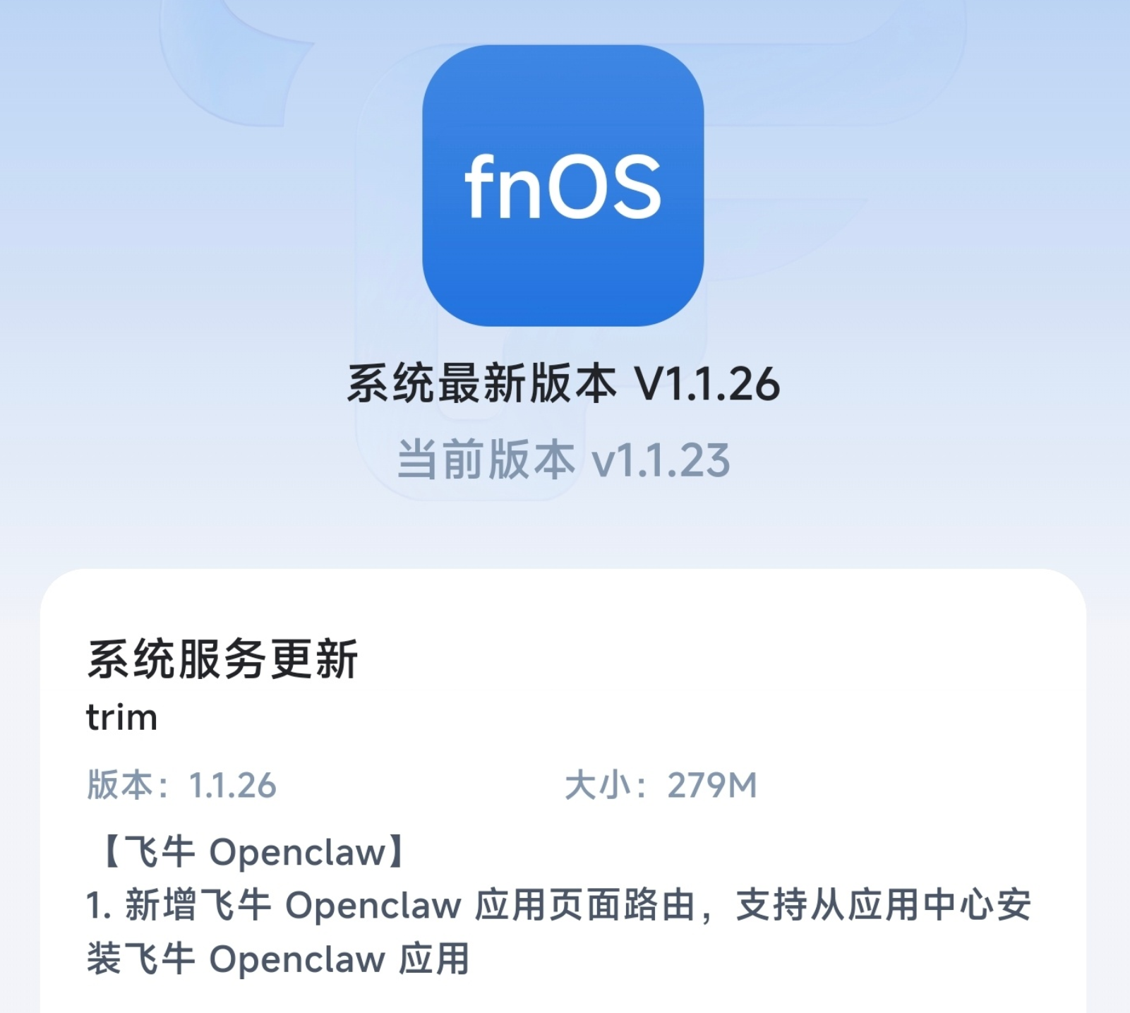 NAS 系统飞牛 fnOS 发布更新,新增了飞牛 Openclaw 的应用页面路由,并支持用户从应用中心安装飞牛 Openclaw 应用。