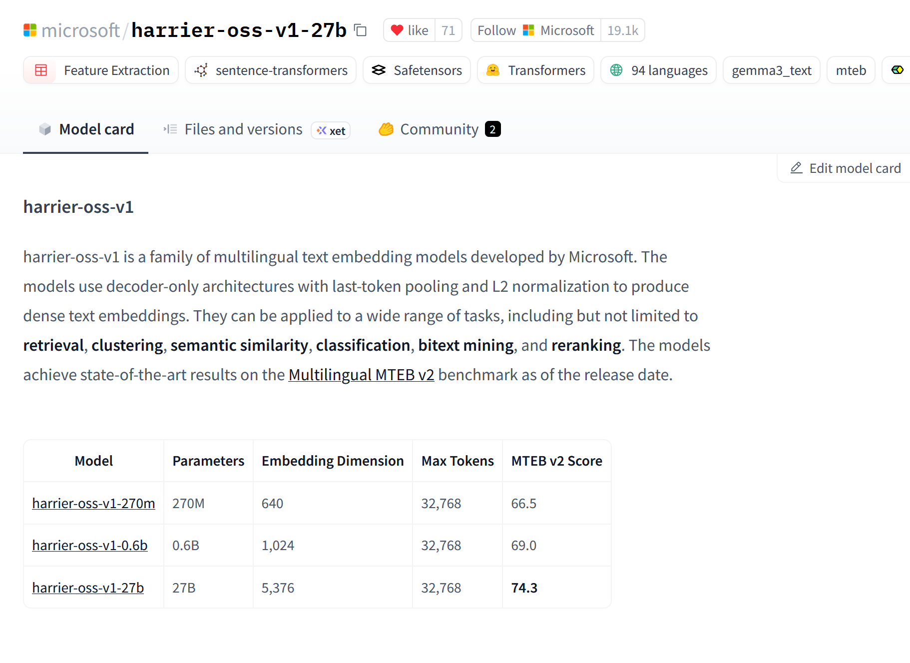 微软开源 harrier-oss-v1,支持 40 余种语言文本嵌入 #8