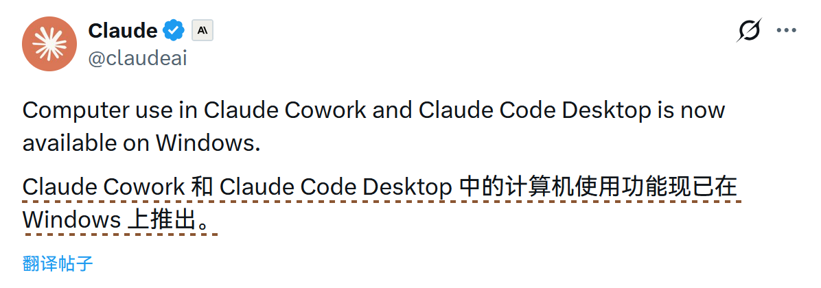 - Claude 官方宣布 Computer use 功能正式支持 Windows 端 ↗