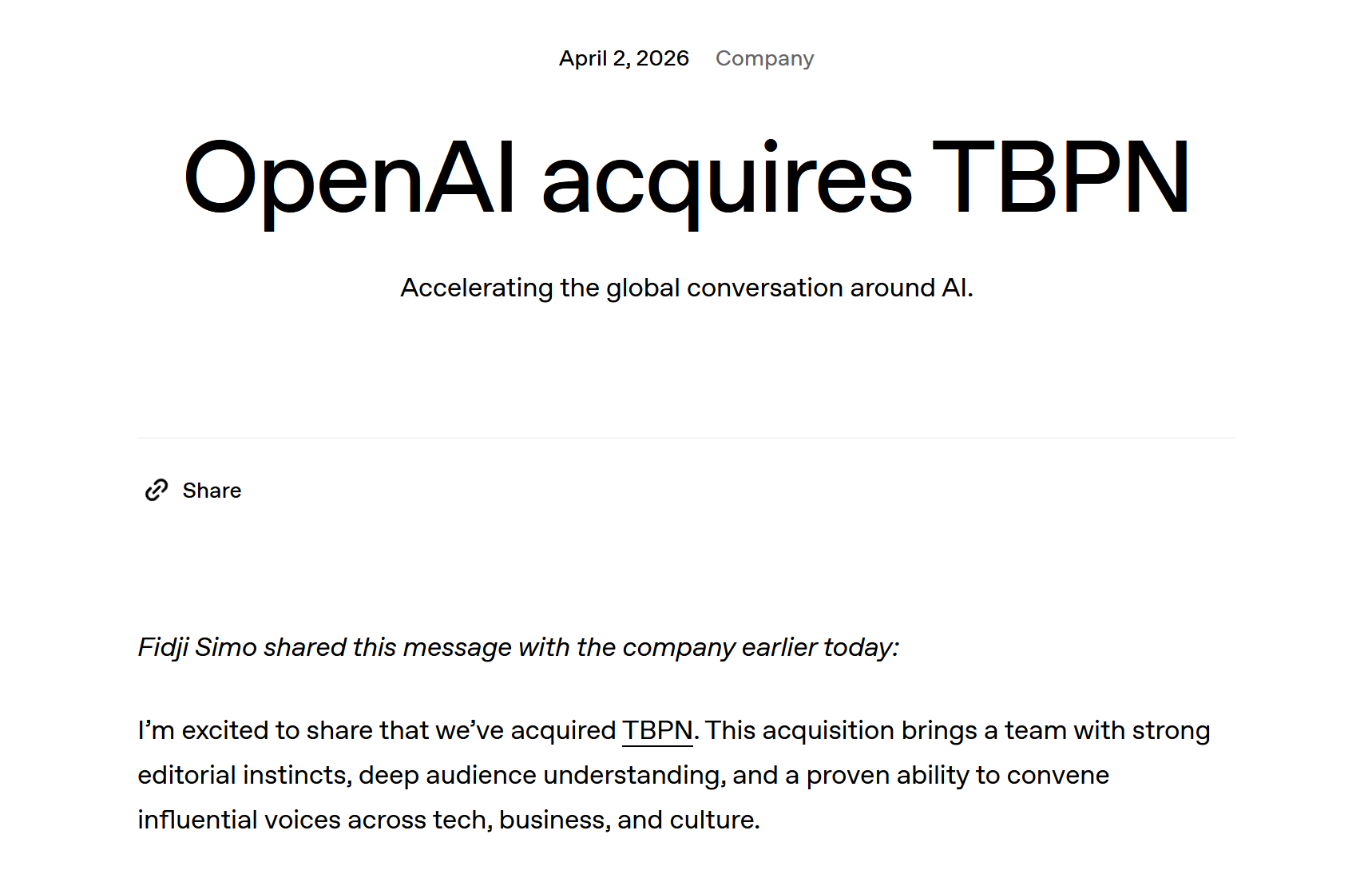 OpenAI 收购独立媒体 TBPN #20
