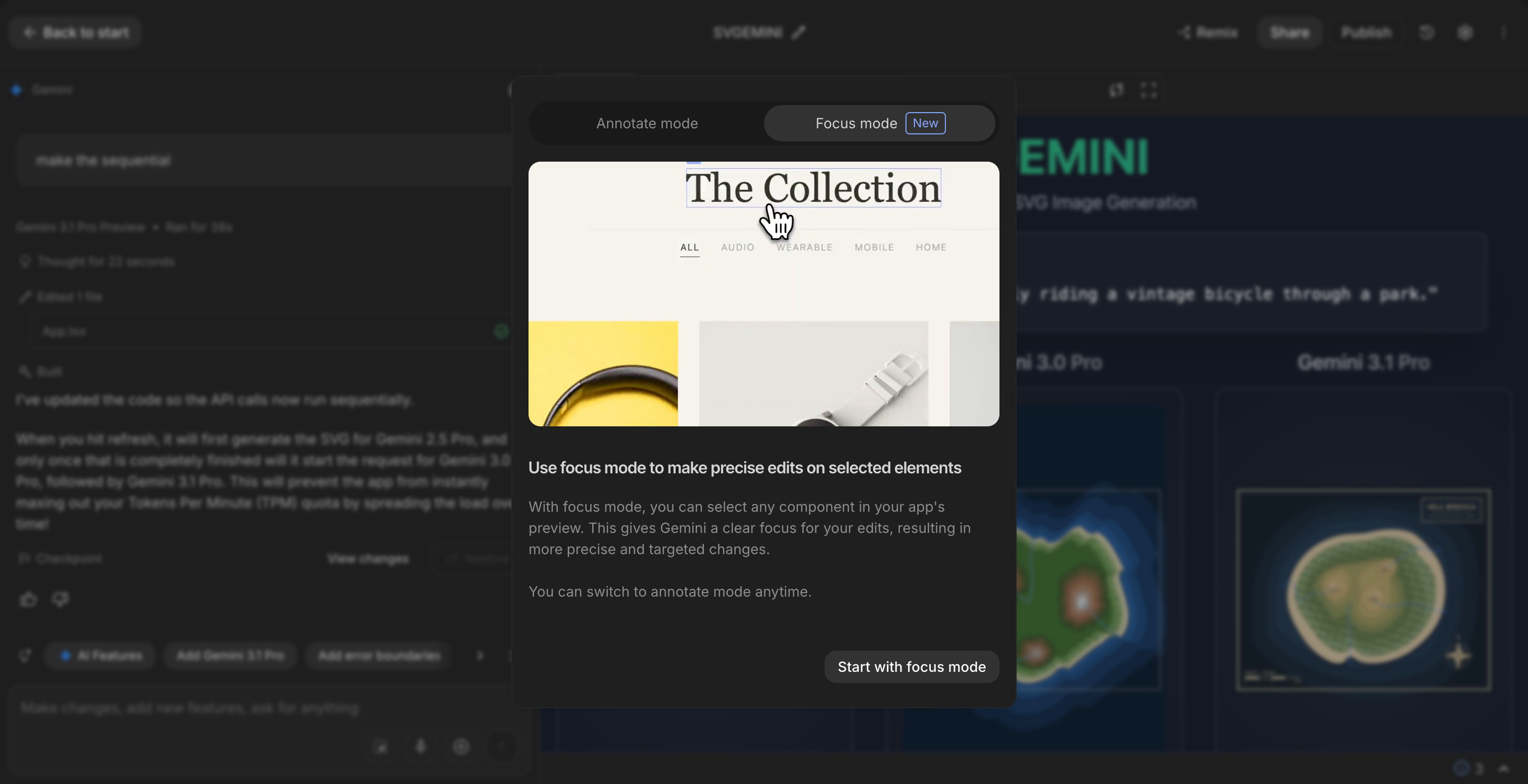 Google AI Studio 上线 Focus mode,支持指向更新 UI 样式 #13