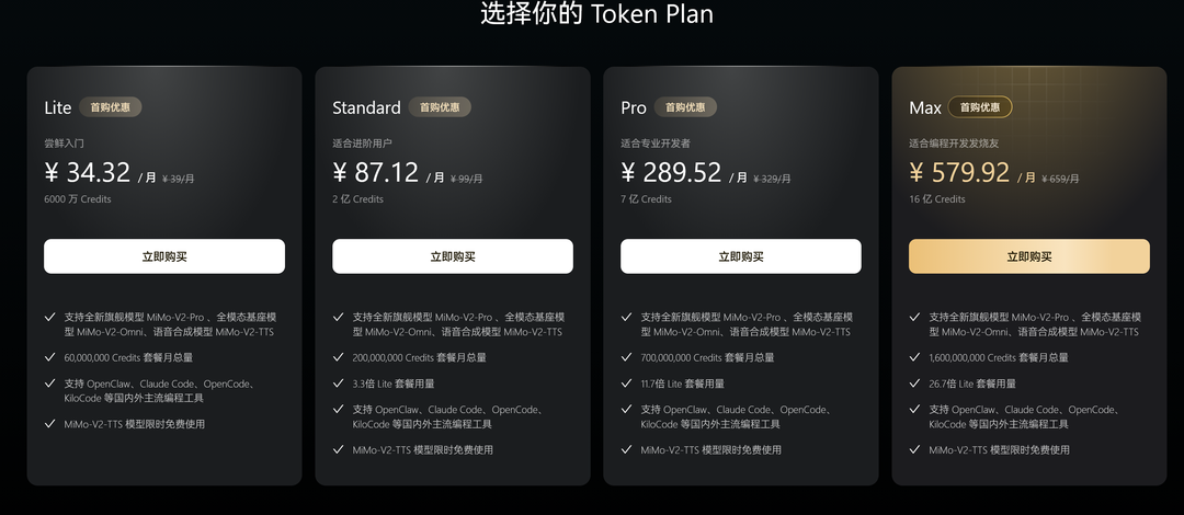小米 MiMo 推出 Token Plan 订阅服务 #10