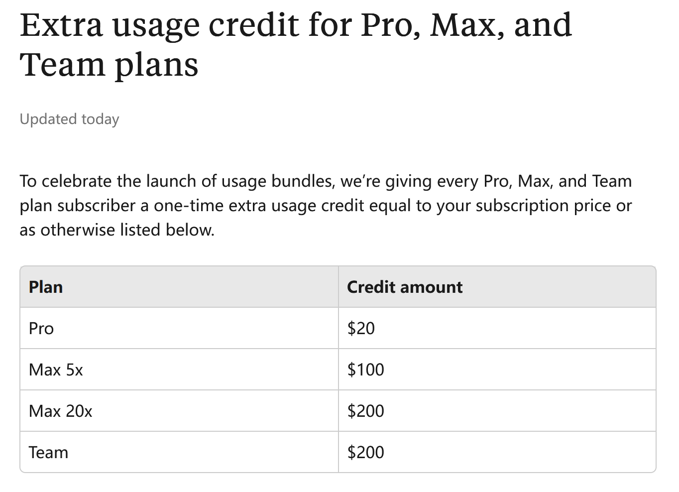 - https://support.claude.com/en/articles/14246053-extra-usage-credit-for-pro-max-and-team-plans