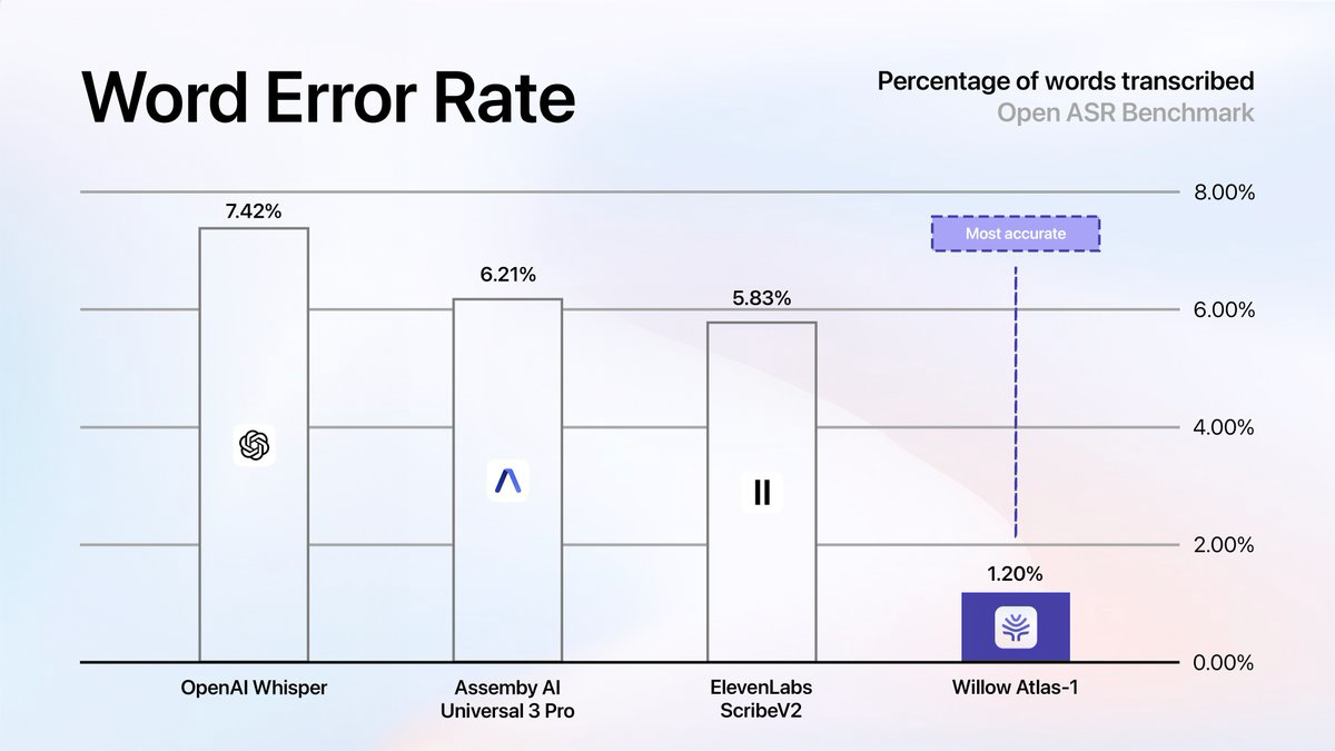 #4 - Willow 发布 Atlas 1 语音转文本模型 ↗