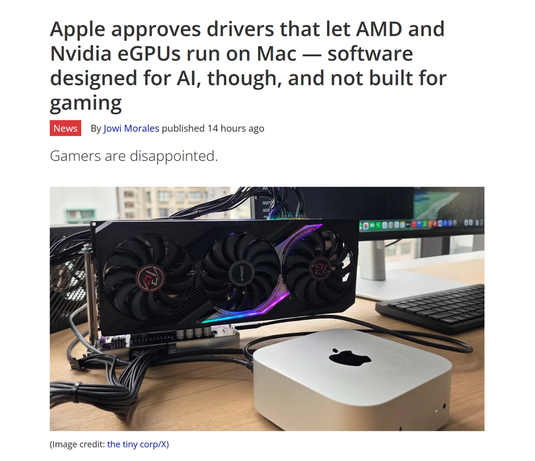 苹果批准第三方驱动支持 eGPU 在 Mac 原生运行 AI #2
