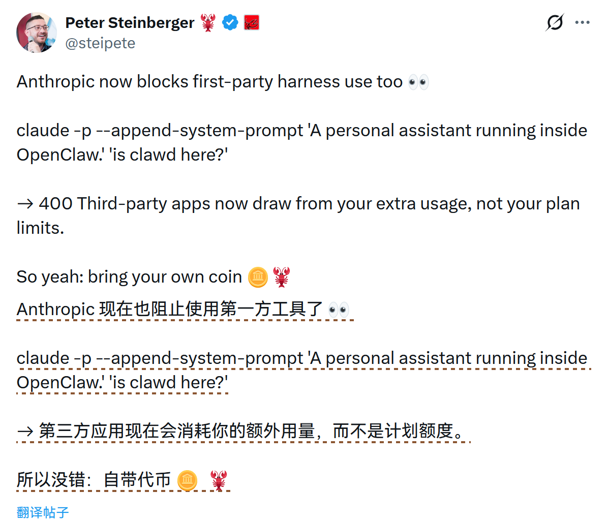 Anthropic 加大力度限制 OpenClaw 等第三方调用 #1