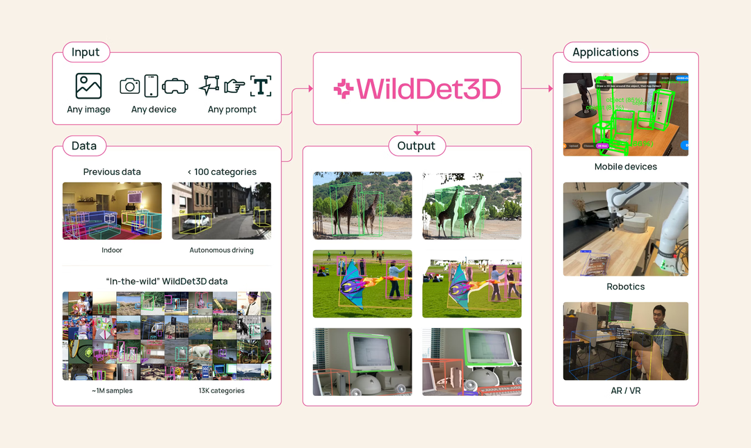 Ai2 携手 华盛顿大学、康奈尔大学 等机构联合发布了开源的单目3D目标检测模型 WildDet3D 及其配套数据集 WildDet3D-Data。