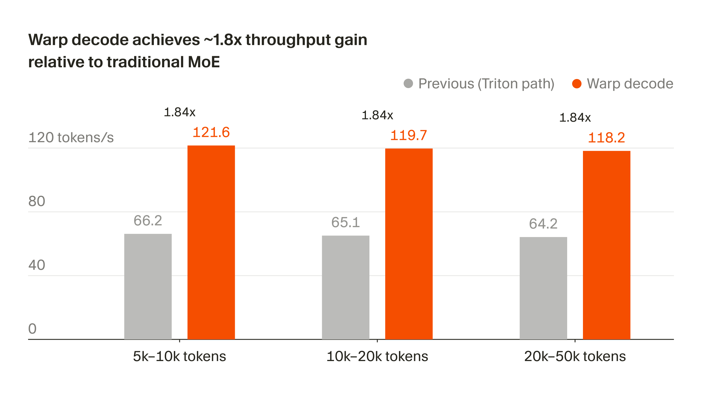 warp decode技术,该技术在 B200 GPU 上实现了 1.84 倍 的吞吐量提升与更高的精度。