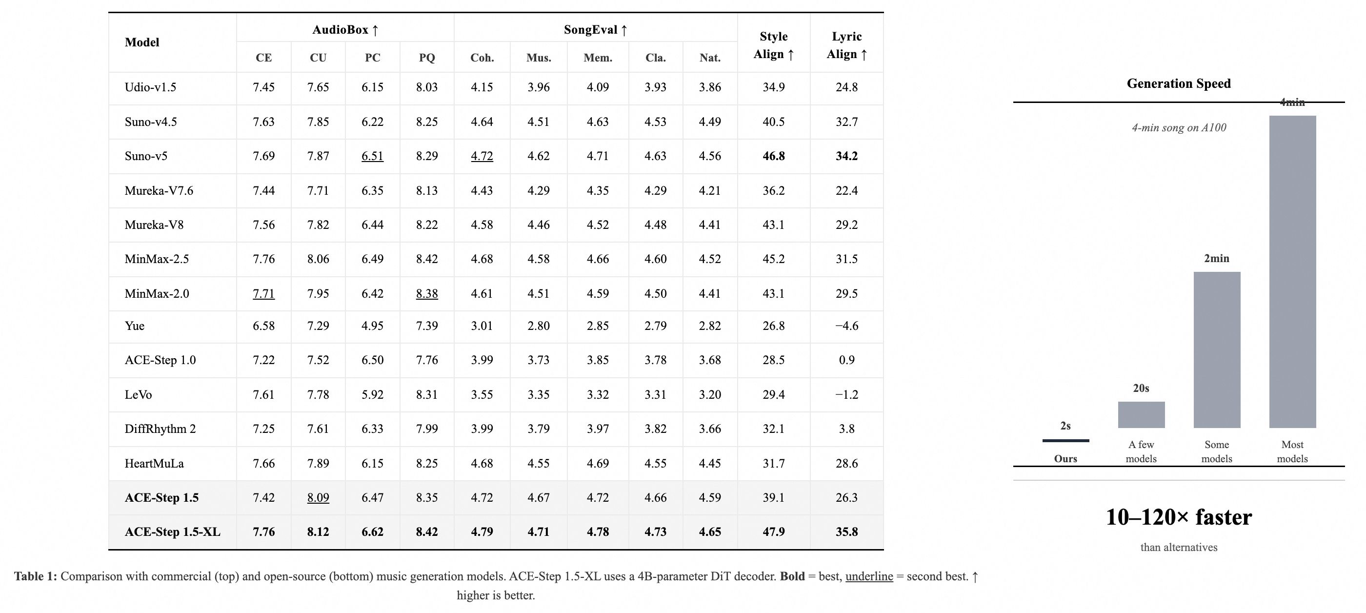 该系列模型采用 MIT 协议,且在 SongEval 评测中超越了 Suno v5 的表现。
